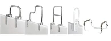 These rails allow users to safely sit or stand at the bathtub and toilet. Bathtub rails can be attached easily and fit many different bathtub types. Toilet Support Rail attaches directly to the toilet.