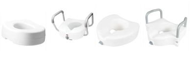 Raised Toilet Seat with or without adjustable arms. These toilet seat assist those with bending or sitting difficulties. Models fit most toilets.